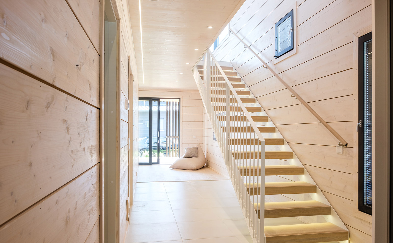 As Oy Tampereen Härmälän Lounassa yhdistyy rivitalossa asumisen helppous ja hirsitalon terveellisyyss ja viihtyvyys.