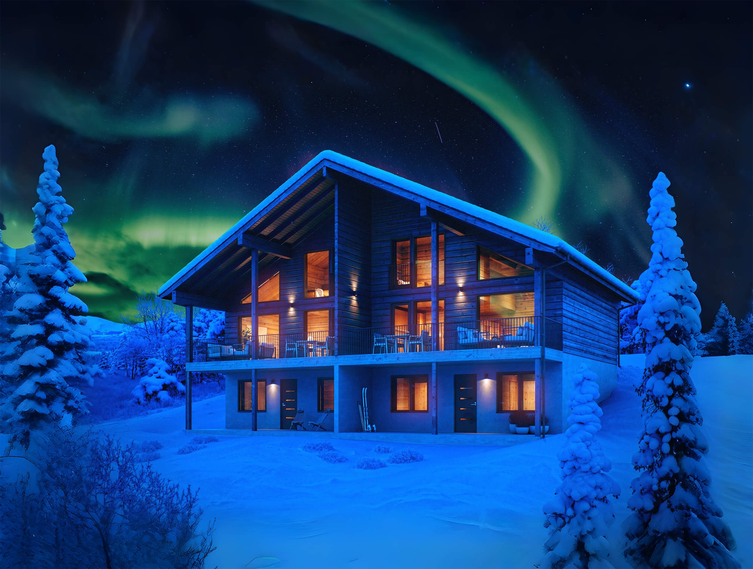 South Village on näyttävä ja kolmitasoinen hirsihuvila, jossa moderni arkkkitehtuuri yhdistyy Lapin luonnon elämyksellisyyteen. Kompakti mutta tehokas kokonaisuus tarjoaa toimivat puitteet ympärivuotiseen vapaa-ajan asumiseen ja vuokrauskäyttöön.